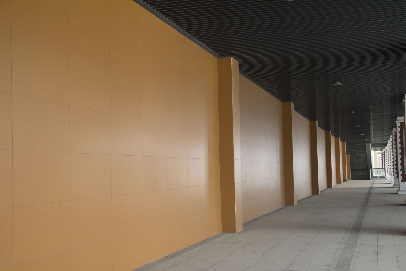 建筑立面使用600*1200橙黃色陶瓷薄板鋪貼裝飾,色澤均勻,典雅大氣。 陶瓷薄板不僅具有優(yōu)秀的裝飾效果,對墻體也可以起到很好的保護作用。 協(xié)進陶瓷,值得您的信賴!