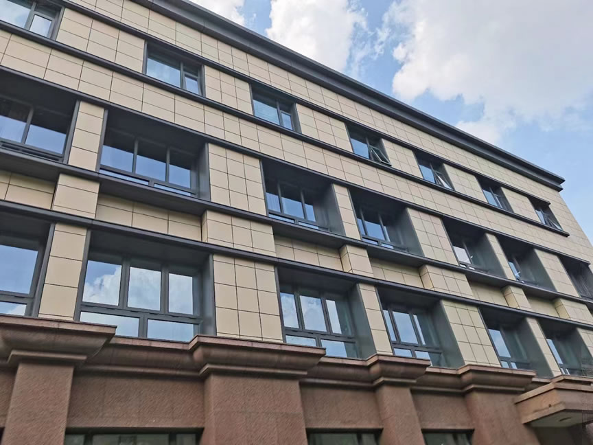 項目位于上海新村路,建筑面積近10萬平方米,為三級甲等綜合性醫(yī)院。 醫(yī)院外立面使用協(xié)進(jìn)純色陶瓷薄板鋪貼。 產(chǎn)品色澤均勻細(xì)膩,效果整潔大氣。