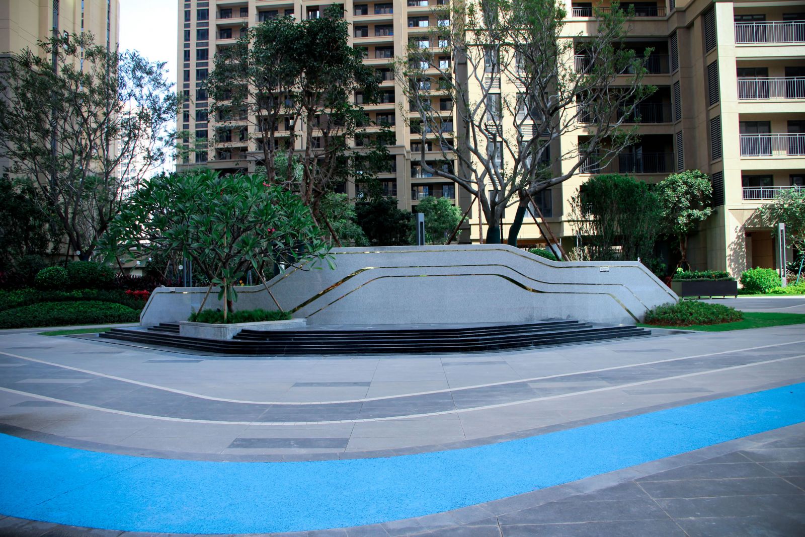 協(xié)進(jìn)地鋪石瓷磚工程案例-力高君逸花園 項目為高檔社區(qū),小區(qū)園林采用使用協(xié)進(jìn)300*600、300*900芝麻灰,芝麻黑產(chǎn)品設(shè)計鋪貼,搭配芝麻白產(chǎn)品作為線條。