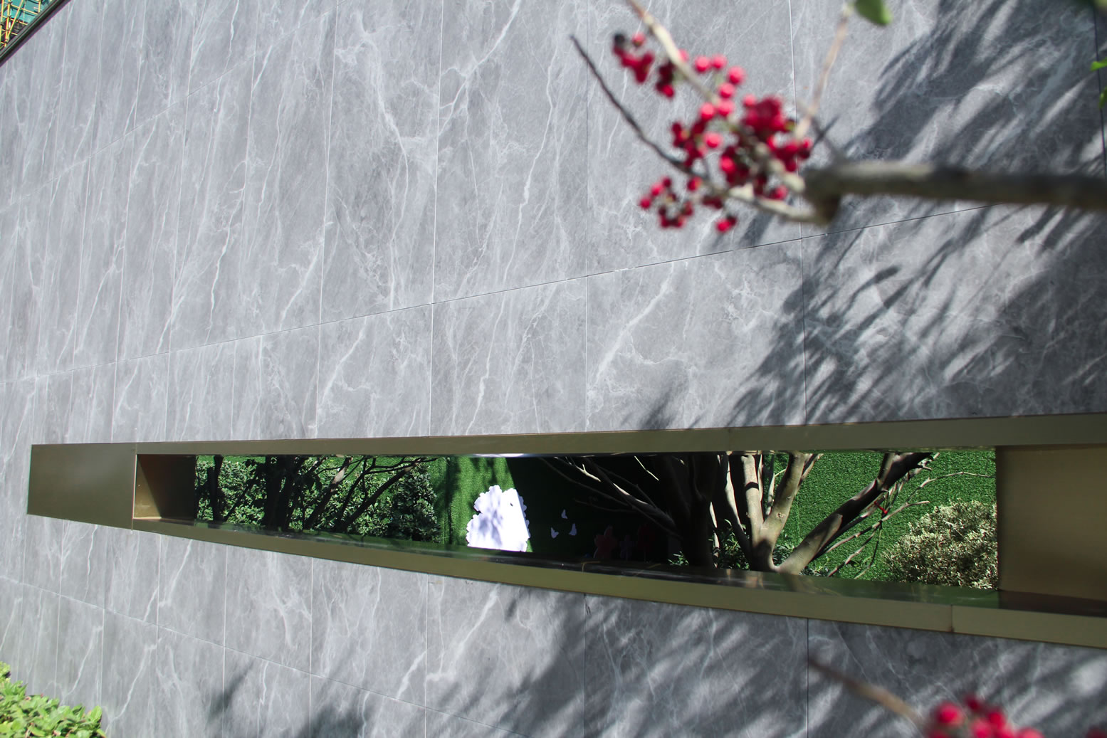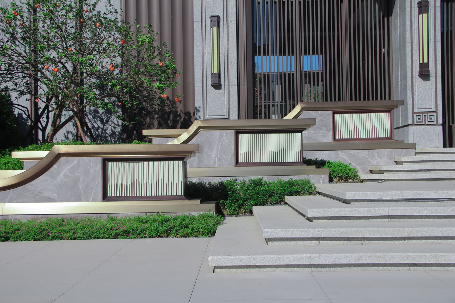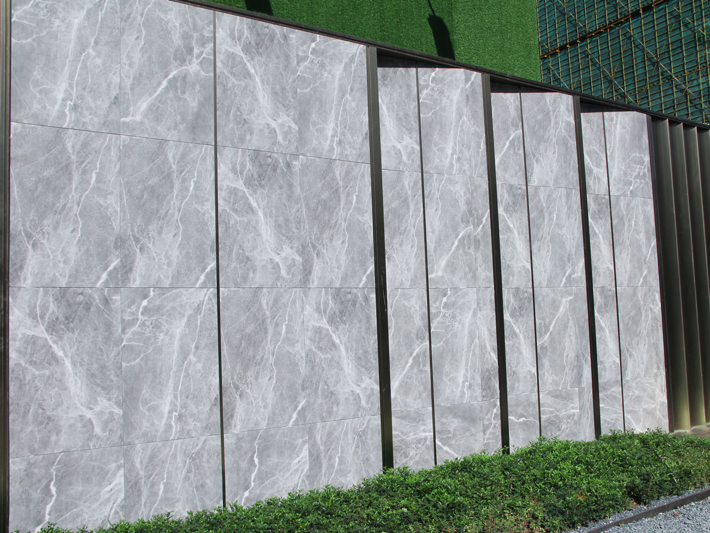 景墻使用600*1200希臘灰產(chǎn)品干掛鋪裝,
