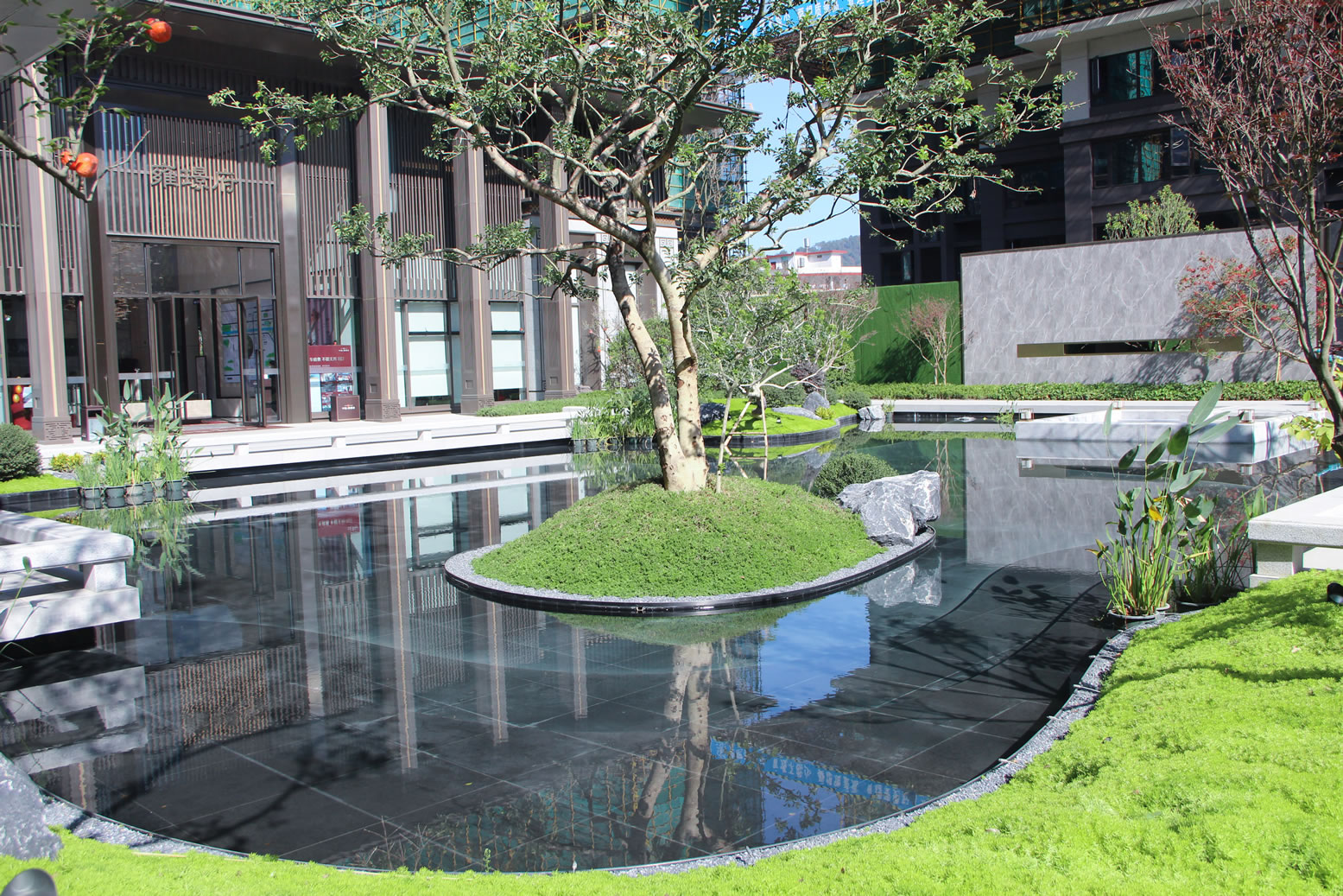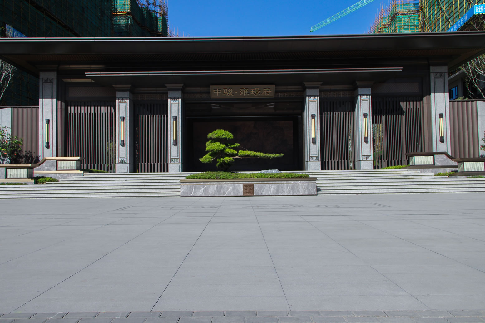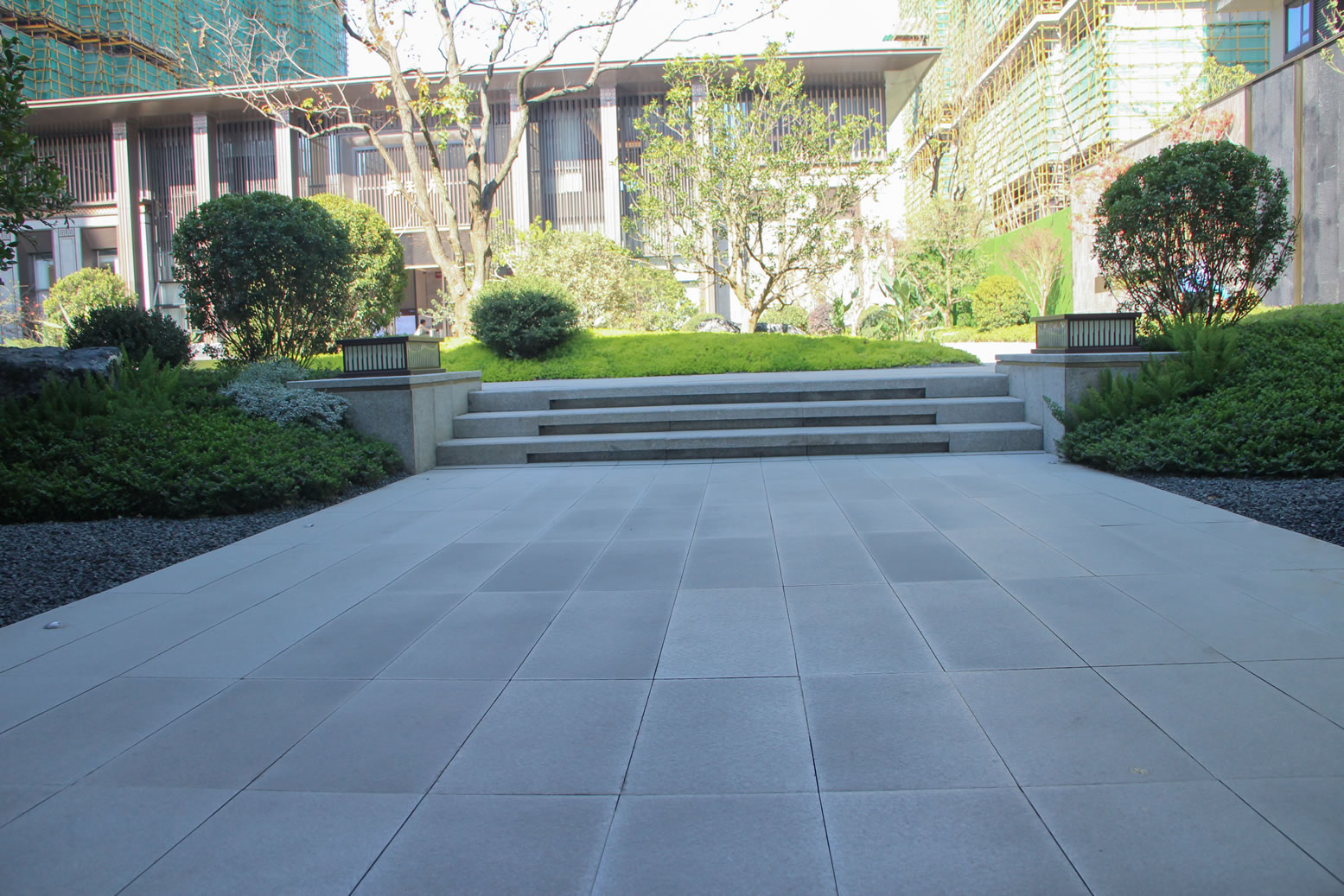 協(xié)進厚板工程案例——永春中駿雍璟府 項目園林設計別致精美,效果復古大氣,極具國風氣息。