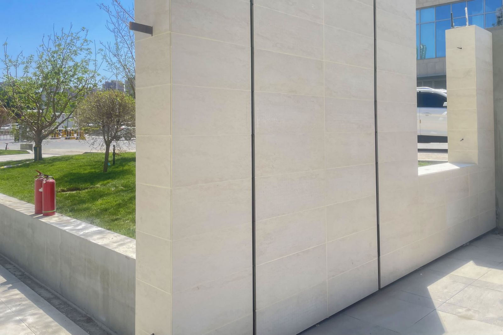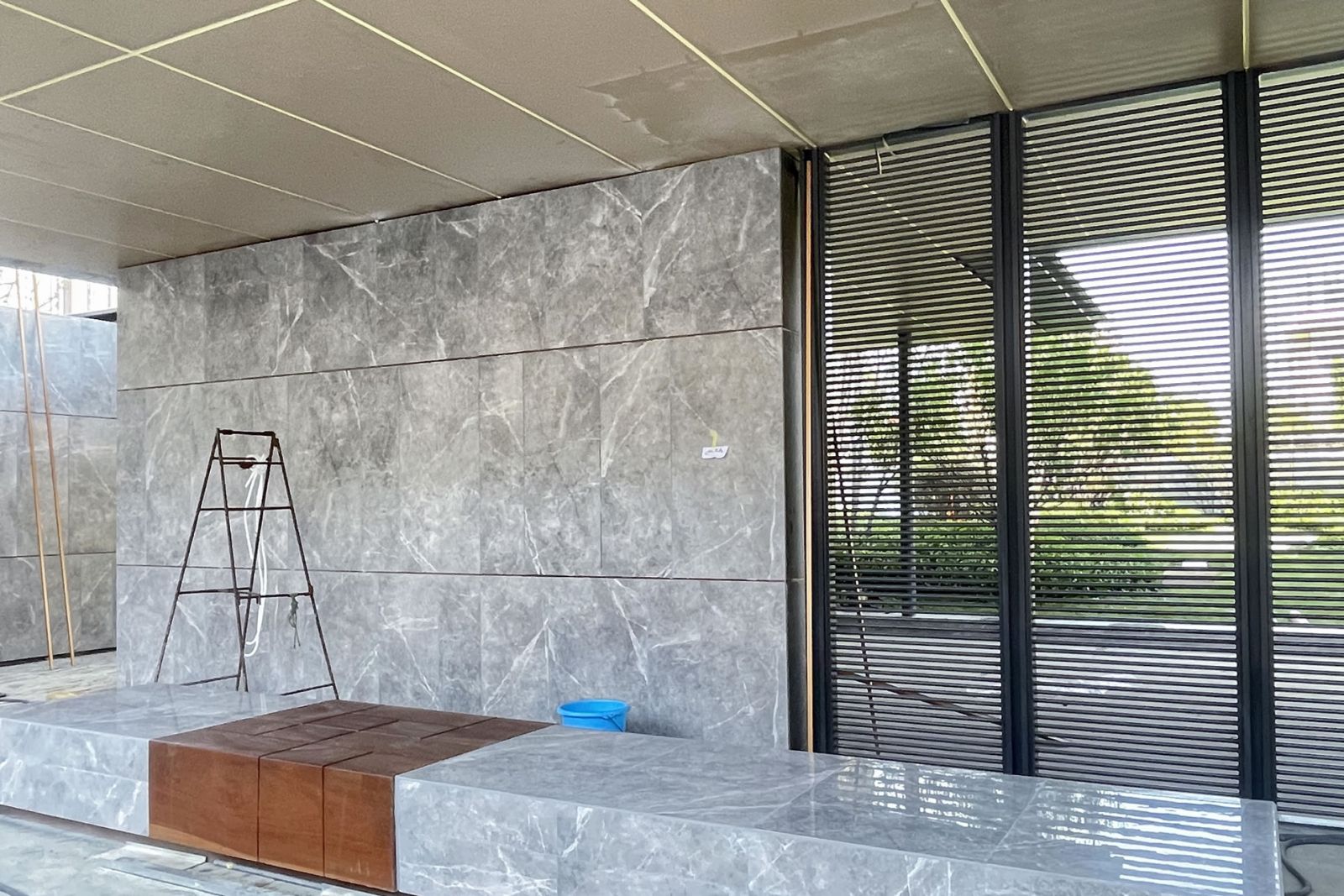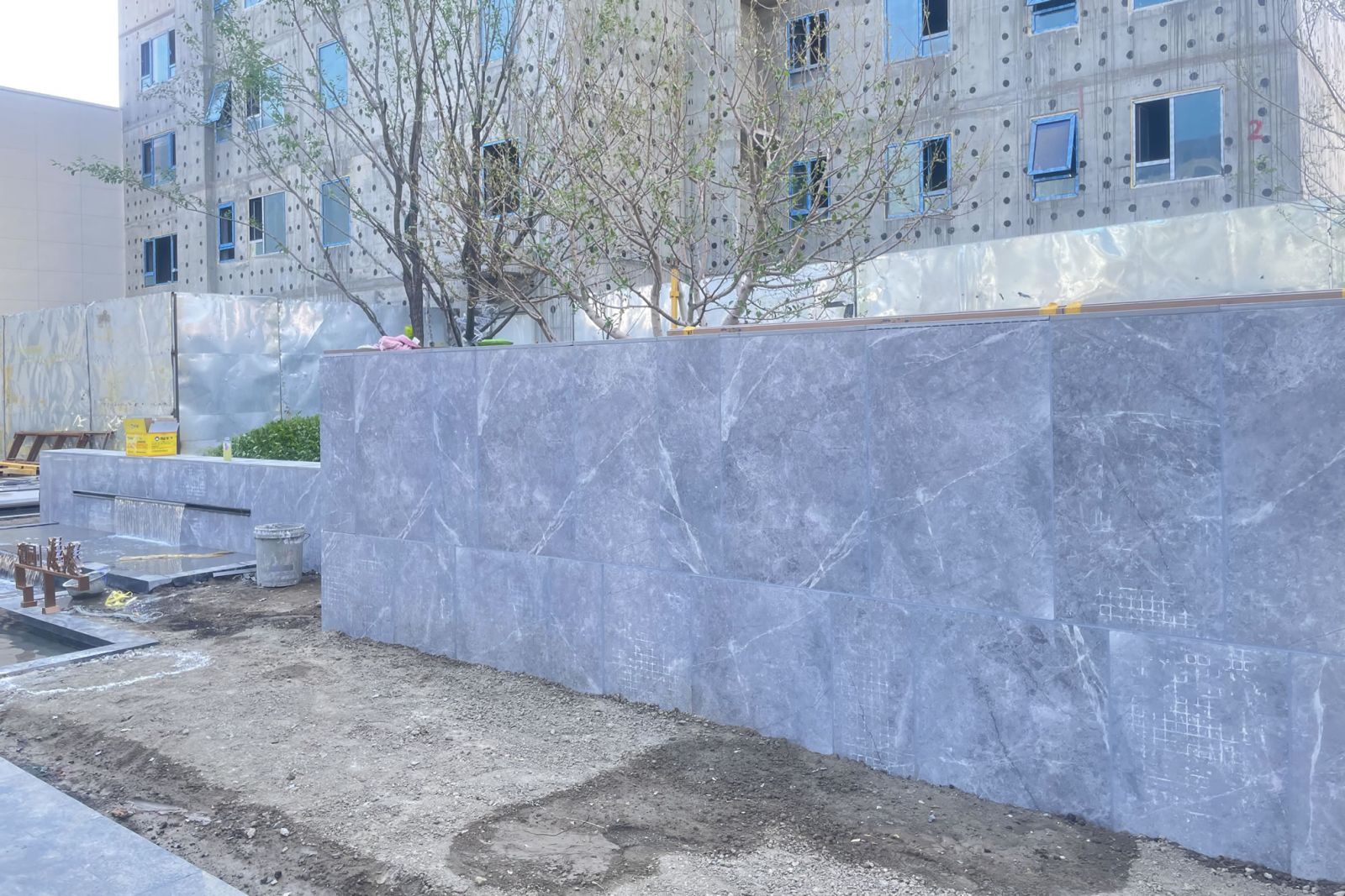 協(xié)進(jìn)厚板工程案例——烏魯木齊萬(wàn)科天山府 該項(xiàng)目是一座綜合性住宅小區(qū),其園林設(shè)計(jì)采用了多種顏色的協(xié)進(jìn)厚板,呈現(xiàn)出豐富多彩的景觀效果。 其中,地面使用了浪花白和夜里雪、芝麻灰系列混和鋪貼,此外,在景墻的設(shè)計(jì)中,維納多米黃和愛(ài)馬仕灰色的景墻磚也被巧妙地應(yīng)用,使整個(gè)建筑物外觀更加美麗。