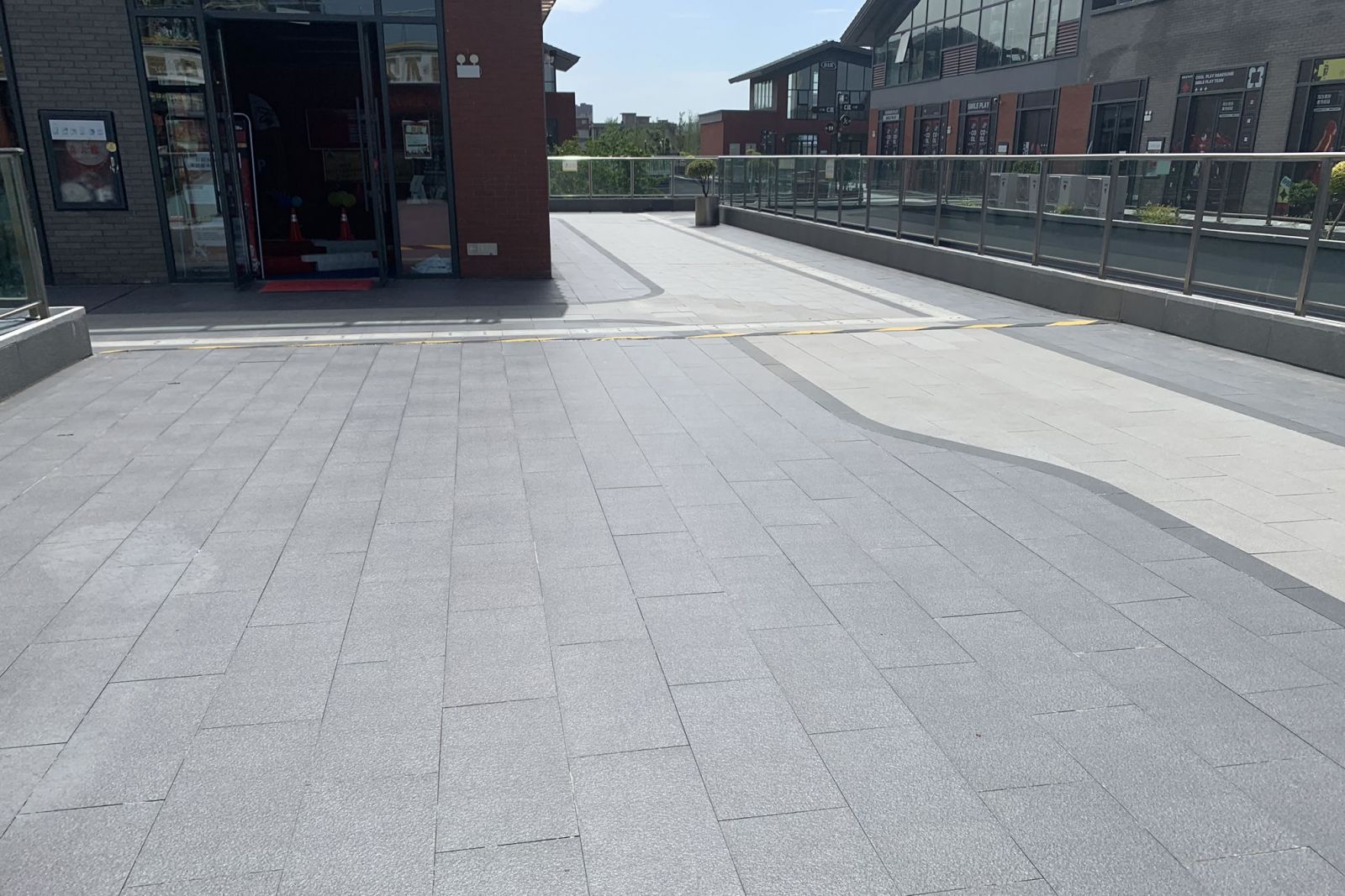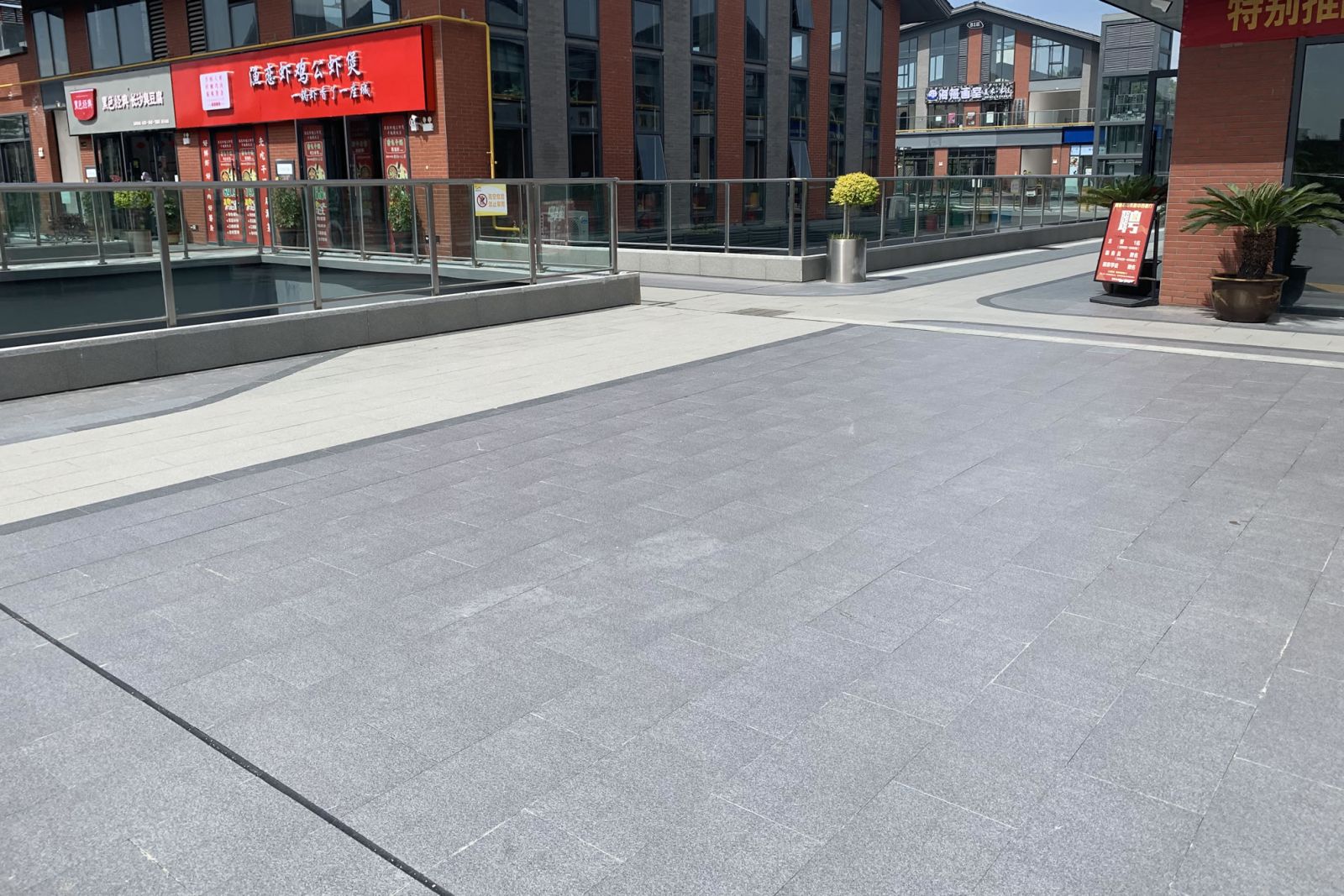 商業(yè)街樓上樓下使用協(xié)進(jìn)地鋪石瓷磚鋪貼,