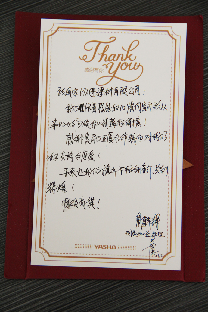 南安協(xié)進建材有限公司被杭州亞廈股份評選為優(yōu)秀合作伙伴