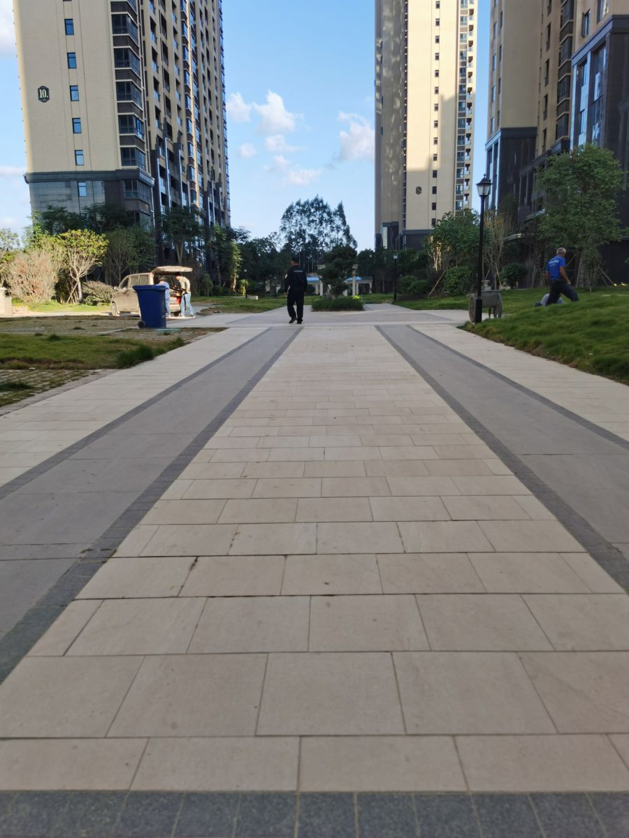 園林庭院使用仿石巖瓷厚板組合,不僅可以鋪貼廣場區(qū)域,也可以勾勒出羊腸小道。整體環(huán)境優(yōu)美舒適。
