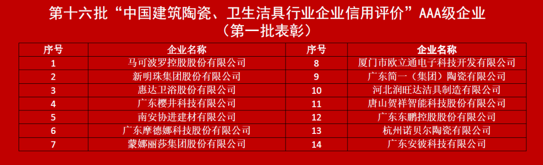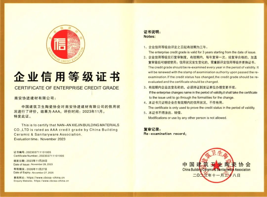 ——熱烈祝賀協(xié)進(jìn)陶瓷再次獲評建陶行業(yè)3A級信用企業(yè)